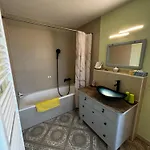 ويوجد حمام خاص. علاوة على ذلك، هناك مجفف الشعر وملاءات الحمام والمناشف أيضًا.